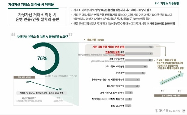 ▲가상자산 거래소 첫 이용 시 어려움 그래픽(사진=하나금융연구소) |