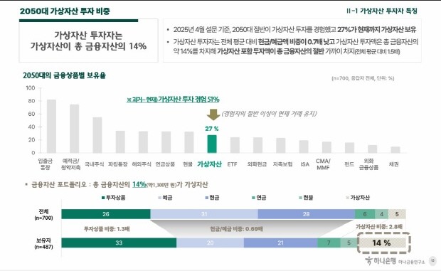 ▲2050대 가상자산 투자 비중 그래픽(사진=하나금융연구소) |
