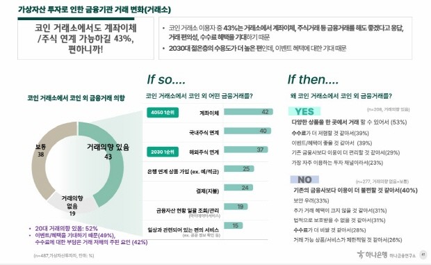 ▲가상자산 투자로 인한 금융기관 거래 변화(거래소) 그래픽(사진=하나금융연구소) |