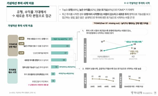▲가상자산 투자 시작 이유 그래픽(사진=하나금융연구소) |
