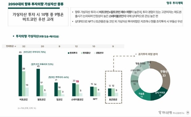 ▲2050대의 향후 투자의향 가상자산 종류 그래픽(사진=하나금융연구소) |