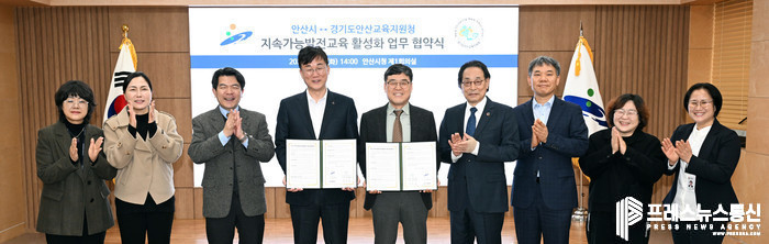 [프레스뉴스] 장현준 기자= 안산시(시장 이민근)는 지난 20일 시청 제1회의실에서 안산교육지원청과 지속가능발전교육 활성화를 위한 협약을 체결했다고 21일 밝혔다.