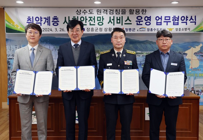 장흥군은 장흥소방서 및 한국수자원공사 장흥수도지사와 연계하여 상수도 원격검침을 활용한 취약계층 사회안전망 서비스 운영에 상호 협력하기로 했다.
