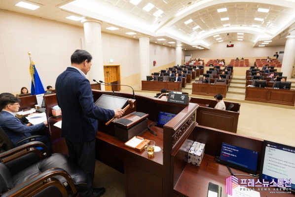이날 본회의를 주재한 박태순 의장은 개회사에서 “이번 정례회에서는 여러 조례안 심사를 비롯해 2024 회계연도 결산과 2025년도 행정사무감사를 진행하게 된다”며 “시 재정 여건에 맞는 심도 있는 심사가 이뤄질 수 있도록 동료 의원들과 공직자 여러분의 협조를 당부한다”고 밝혔다.