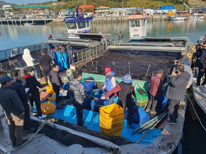 이날 물김 평균 경매 단가는 1마대(120kg) 당 166,000원에 거래됐다. 11월 3일부터 12월 7일까지 총 4,394톤(77억 원)의 물김이 위판됐으며, 지난해 같은 기간 대비 생산량은 33%, 생산액은 55% 증가했다. 지난해에는 총 75,600여 톤(822억 원)의 물김 위판 실적을 기록했다.