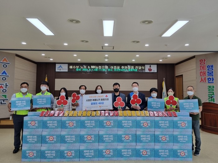 [프레스뉴스] 임규모 기자= 해양수산부 공무원 노동조합(노조위원장 윤병철)과 NH농협은행 정부세종청사 금융센터(센터장 이인용)가 지난 1일 세종시 장군면의 어려운 이웃을 위해 500만 원 상당의 후원 물품을 기탁했다.