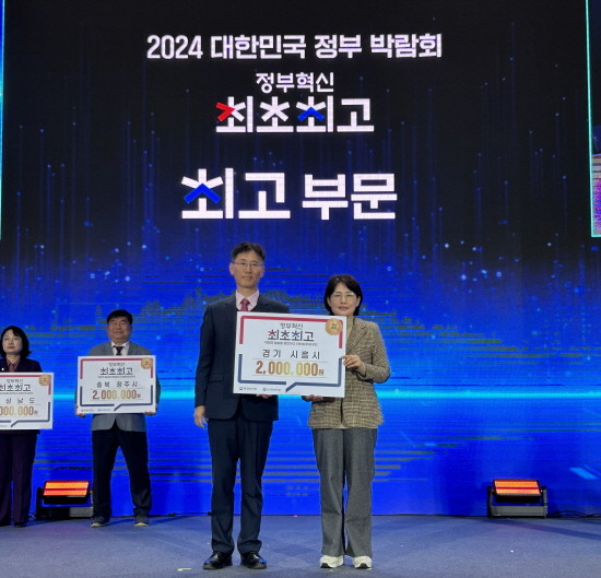 | ▲시흥시는 지난 15일 광주 김대중 컨벤션센터에서 열린 정부혁신 최초ㆍ최고 선정기관 인증패 수여식에서 ‘공공 어린이 놀이터(실내)’ 분야 ‘국내 최고사례’로 지난 6월에 선정된 공로로 인증패와 포상금을 수상했다.(사진=시흥시) |