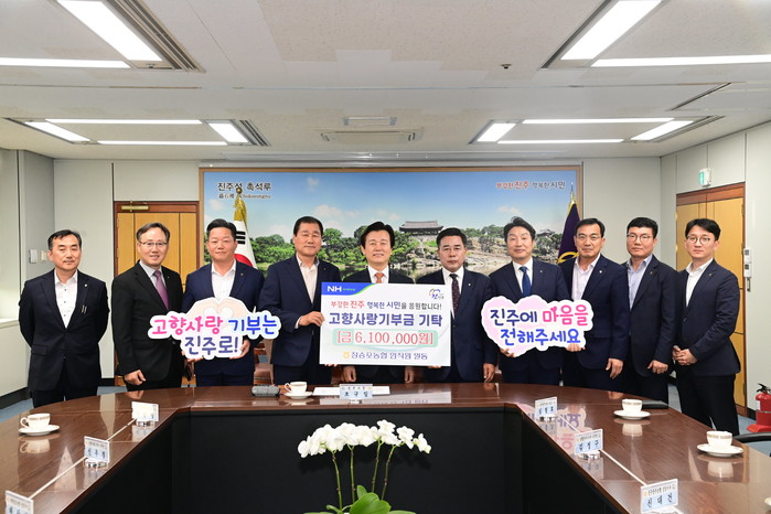 [프레스뉴스] 정호일 기자= 진주시는 지난 18일 시청 5층 기업인의 방에서 거제장승포농협 임직원들로부터 2년 연속으로 고향사랑기부금 610만 원을 기탁받았다고 전했다.