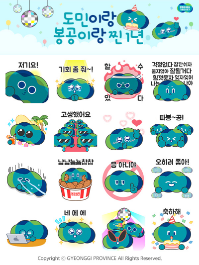 이원일 경기도 홍보기획관은 “친근하고 귀여운 도정 캐릭터 ‘봉공이’ 카카오톡 이모티콘을 통해 경기도 브랜드와 도정슬로건에 대한 관심이 자연스럽게 생길 것으로 기대한다”라며 “앞으로 ‘봉공이’를 활용해 많은 이벤트를 선보일 예정이니 많은 관심 부탁드린다”라고 말했다.