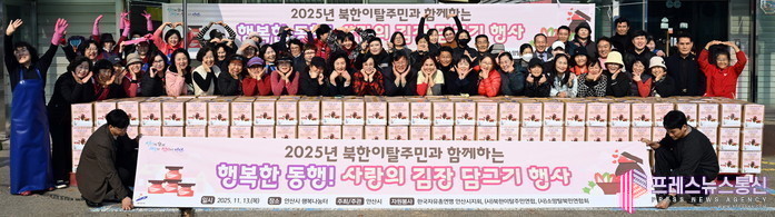 [프레스뉴스] 장현준 기자= 안산시(시장 이민근)는 지난 13일 상록구 행복나눔터에서 ‘북한이탈주민과 함께하는 행복한 동행, 사랑의 김장 담그기’ 행사를 개최했다고 14일 밝혔다.