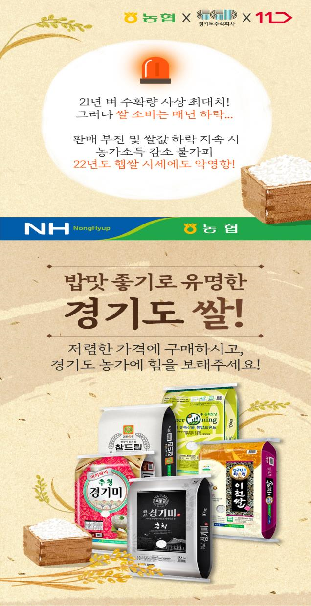 경기도주식회사는 오는 24일 금요일 자정부터 대형 온라인 쇼핑몰 11번가를 통해 경기 지역 쌀 판매 긴급 공수 행사를 진행한다.