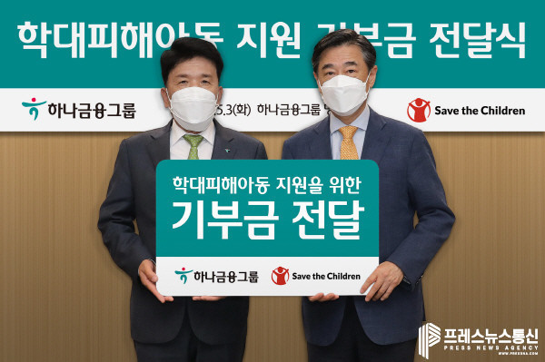 [프레스뉴스] 김대일 기자= 하나금융그룹(회장 함영주)은 지난 3일 학대피해아동의 일상 회복 지원 사업을 실시하며 국제아동권리 비영리단체인 세이브더칠드런(이사장 오준)에 기부금 8억원을 전달했다고 밝혔다.
