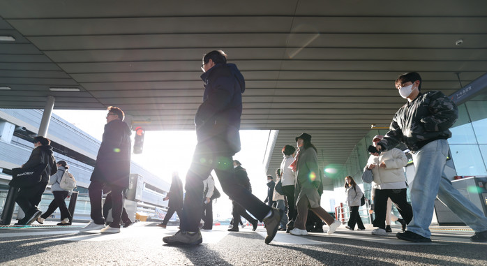 | ▲전국 대부분 지역이 0도 안팎으로 내려간 2일 경기 수원시 권선구 수원역환승센터에서 시민들이 두터운 옷을 입고 출근하고 있다./사진-뉴스1 |