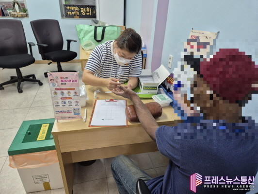▲안산시 상록수보건소 관계자가 지난 9일 외국인 대상 말라리아 신속검사를 진행하고 있다.(사진=안산시) |