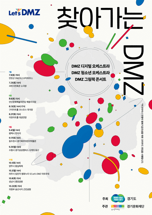 올해 〈찾아가는 DMZ〉는 이번 연천 행사를 시작으로 오는 10월까지 약 4개월간 과천, 안산, 구리, 이천, 평택, 동두천, 수원, 양주, 파주, 성남, 의정부 등 도내 시군 곳곳에서 무료 공연으로 진행될 예정이다.