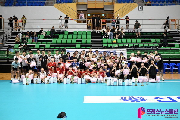 ▲이민근 안산시장(맨 뒷줄 오른쪽 아홉번째)이 지난 14일 ‘2025 KYK파운데이션 전국 중학교 배구 최강전 안산대회’ 시상식에서 참가선수들과 함께 기념촬영을 하고 있다.(사진=안산시) |