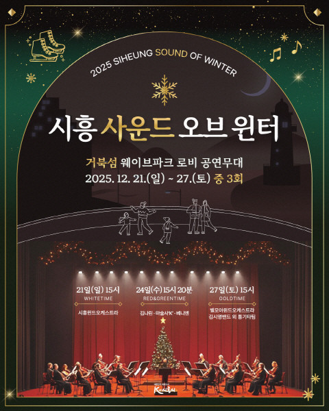 빙판 위에서 몸을 녹인 뒤에는 따뜻한 음악으로 한 해를 마무리할 수 있다. 시는 거북섬 스케이트장 개장을 기념해 지역 문화예술단체와 함께 ‘2025 시흥 사운드 오브 윈터’를 개최한다. 12월 21일부터 27일까지 웨이브파크 로비 공연무대에서 총 3회에 걸쳐 다양한 공연이 펼쳐진다.