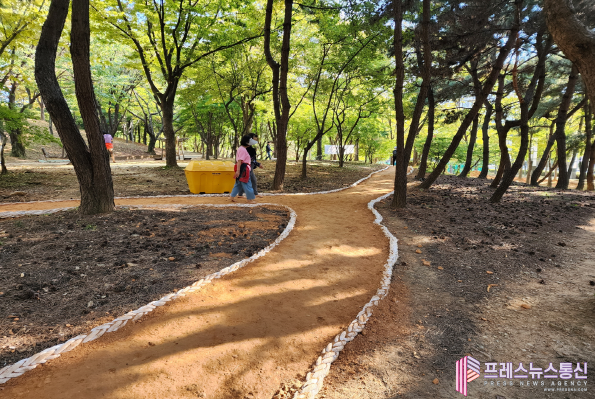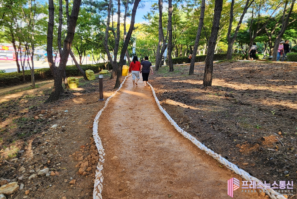| ▲민속공원 내 설치된 맨발걷기 산책로(사진=안산시) |