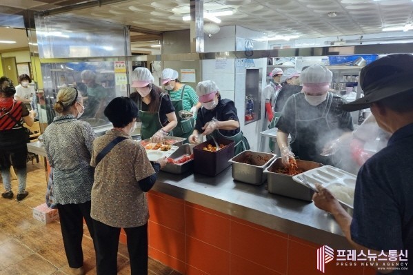 | ▲안산시약사회, 여름 맞아 안산시에 시원한 사랑의 나눔 손길(31일 오전 배식 봉사활동 모습)사진=안산시 |