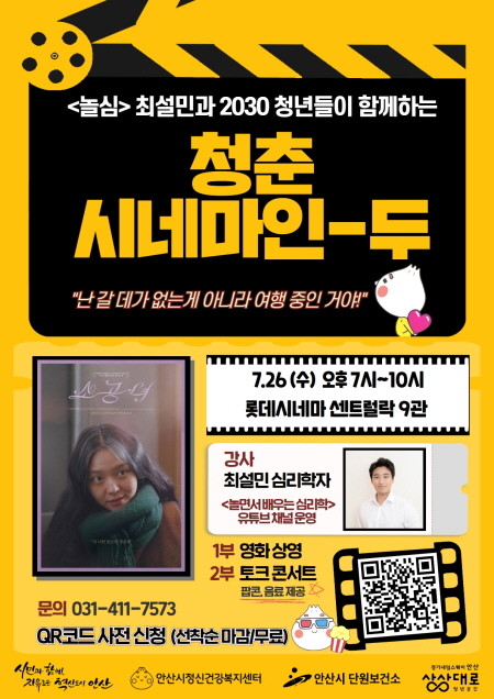 고잔동에 위치한 롯데시네마 센트럴락 9관에서 진행되는 이번 행사는 안산시에거주하거나 근무·학업 중인 청년(1984~2004년생) 130여 명을 대상으로 1부 영화상영, 2부 토크콘서트를 진행한다.
