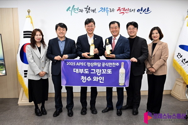 [프레스뉴스] 장현준 기자= 안산시(시장 이민근)는 최근 APEC 정상회의 공식 만찬주로 오른 그랑꼬또 ‘청수’와인 생산 법인 그린영농조합법인을 초청해 격려하는 자리를 마련했다고 26일 밝혔다.