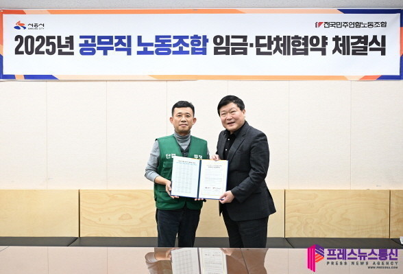 [프레스뉴스] 장현준 기자= 시흥시(시장 임병택)는 지난 11월 26일 시청 다슬방에서 교섭대표 노동조합인 전국민주연합노동조합 시흥지부와 2025년도 공무직 임금ㆍ단체협약을 체결했다.