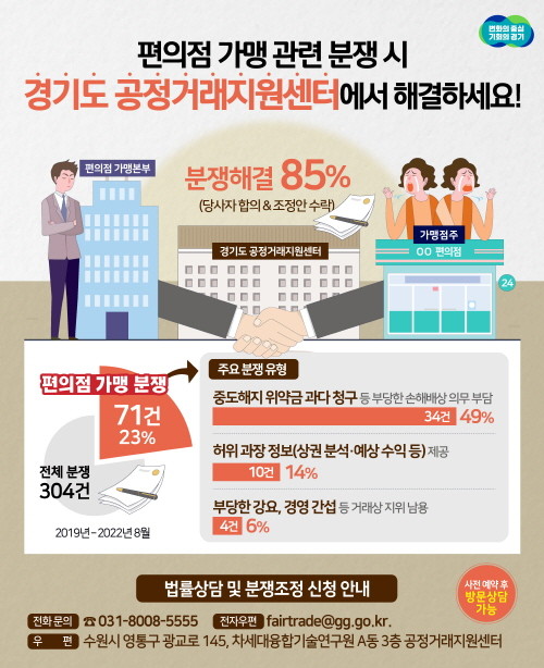 | ▲ 편의점 가맹 분쟁, 경기도 공정거래지원센터에서 해결하세요 그래픽자료(사진=경기도) |