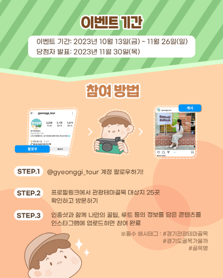 자세한 내용은 경기투어 인스타그램의 골목 추천 이벤트 게시물에서 확인할 수 있다.