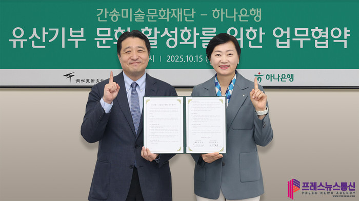[프레스뉴스] 류현주 기자= 하나은행(은행장 이호성)은 지난 15일 서울 성북구 간송미술관에서 간송미술문화재단(이사장 전영우)과 유산 기부 활성화 및 문화예술 가치 확산을 위한 업무협약을 체결했다고 밝혔다.
