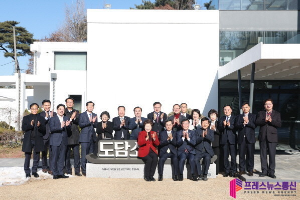 | ▲ 3일 오전 도담소에서 열린 도의회 의장단ㆍ상임위원장단 신년 오찬 간담회에서 김동연 경기도지사, 염종현 경기도의회 의장, 남경순 경기도의회 부의장, 김판수 경기도의회 부의장 및 경기도의회 의장단ㆍ상임위원장단, 오병권 행정1부지사, 오후석 행정2부지사, 염태영 경제부지사 등이 기념촬영을 하고 있다.(사진=경기도) |