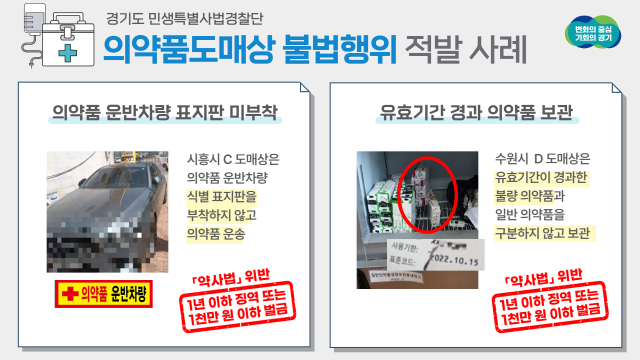 | ▲ 의약품도매상 불법행위 적발 사례 그래픽자료(사진=경기도) |