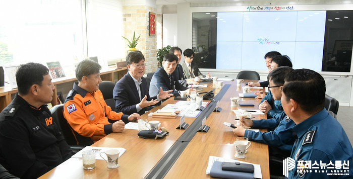 [프레스뉴스] 장현준 기자= 안산시는 지난 23일 이민근 시장이 단원·상록경찰서장, 안산소방서장 등 각 대표 기관장과 간담회를 갖고 ‘안산형 시민안전모델’ 정립에 대한 주요 현안을 논의했다고 24일 밝혔다.