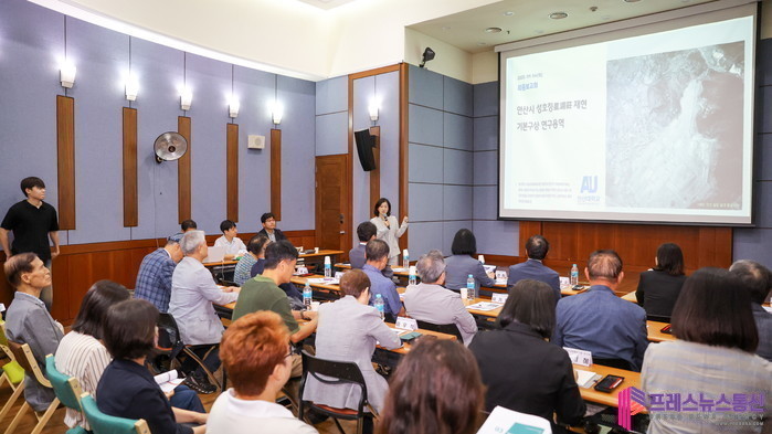 ▲지난 4일 성호박물관 대강당에서 성호이익 가옥 '성호장' 재현을 위한 연구용역 최종보고회를 진행하고 있다.(사진=안산시) |