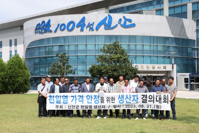[전남=프레스뉴스] 강래성 기자= 신안천일염생산자연합회(회장 이철순)에서는 21일 신안군청 잔디광장에서 천일염생산자연합회원들 20여 명과 최근 가격변동이 심한 천일염의 가격안정화를 위한 결의문을 발표했다.
