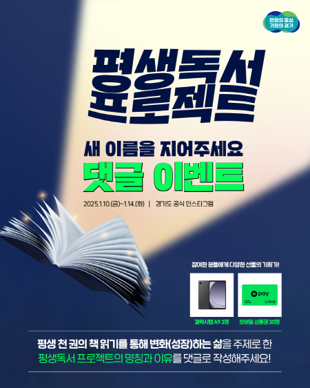 도는 프로젝트의 의미를 알리고 독서 활동 동참을 독려하고자 10일 오후 1시부터 14일까지 5일간 경기도 공식 인스타그램 댓글 이벤트를 진행한다.