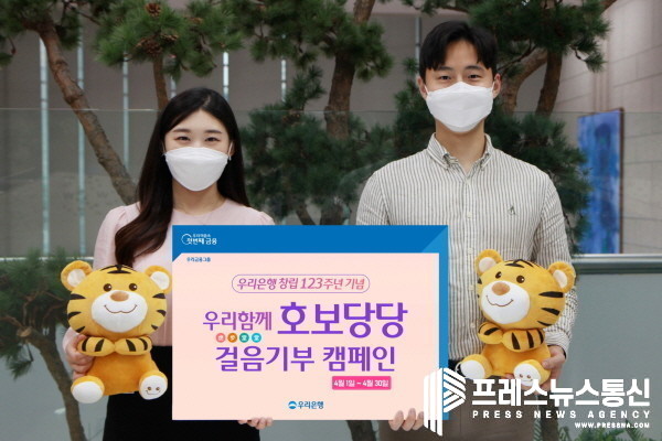 [프레스뉴스] 김대일 기자= 우리금융지주의 자회사 우리은행(은행장 이원덕)은 임직원 참여형 비대면 사회공헌활동인‘우리 함께 호보당당(虎步堂堂)’캠페인을 4월 한 달간 실시한다고 1일 밝혔다.