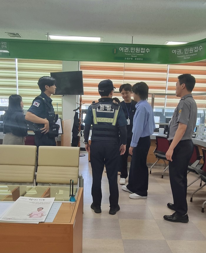 이번 훈련은 민원실 내 민원응대 과정에서 발생가능한 폭언.폭행 등 비상상황에 대비하기 위해 특이민원 상황을 가정하여 진행됐다.