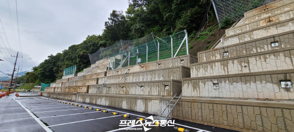 지난 2020년 3월 설계용역을 착수한데 이어 같은 해 11월부터 착공, 취약비탈면에 대해 계단식 옹벽과 경관형 옹벽을 설치·보강하고 낙석에 대비해 링네트, 낙석방지책 등을 설치해 도민 안전 확보에 주력했다.