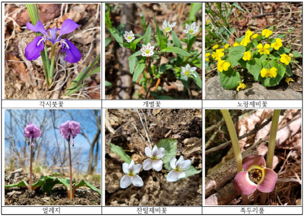 보랏빛의 고개 숙여 피어있는 얼레지와 하얀색이 유난히 빛나는 잔털제비꽃, 땅 가까이 숨어 피는 족두리풀은 물론, 노랑제비꽃, 개별꽃, 각시붓꽃 등 도심 속에서 쉽게 볼 수 없는 야생화들의 향연을 즐길 수 있다.