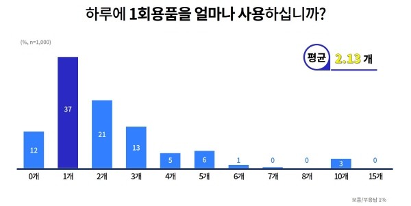 우선 도민들은 하루 평균 2.13개의 1회용품을 사용하는 것으로 조사됐다. 이를 만 18세 이상 도민 1,136만 명으로 단순 환산하면 하루 사용량은 총 2,416만여 개에 달한다.