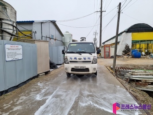 ▲ 양돈농장 주변도로 소독모습(사진=경기도북부청) |
