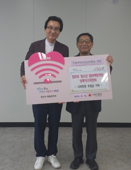 [프레스뉴스] 장현준 기자= 안산시(시장 이민근)는 최근 법무부 청소년 범죄예방위원 상록지구위원회로부터 후원금 100만 원을 기탁받았다고 20일 밝혔다.