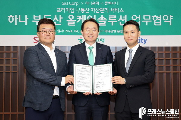 [프레스뉴스] 류현주 기자= 하나은행(은행장 이승열)은 지난 22일 공간관리 전문기업인 ㈜에스앤아이코퍼레이션(대표 형원준, S&I Corp.)과 인공지능(AI) 기반 기획설계 프롭테크 기업인 ㈜에디트콜렉티브(대표 전주형)와 함께 프리미엄 부동산 자산관리 서비스 『하나 부동산 올케어 솔루션』을 론칭했다고 밝혔다.