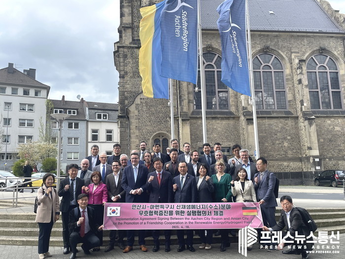 [프레스뉴스] 장현준 기자= 안산시(시장 이민근)는 지난 18일(현지시간) 독일 아헨특구시와 수소 등 신재생에너지 분야에서 내실 있는 협력을 전개하기 위한 실행협의서를 체결했다고 19일 밝혔다.