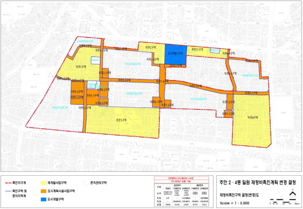 주민들이 해제 동의서를 구청에 제출, 해제된 후 2022년 6월 13일 주안 2·4동 ‘재정비촉진지구 지정(변경), 재정비촉진계획(변경) 결정 및 지형도면’이 고시됐다.