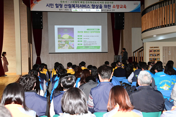[프레스뉴스] 정호일 기자= 진주시는 11일 진성면 월아산 숲속의 진주에서 그린협약을 체결한 혁신도시 이전 공공기관 직원 70여 명을 대상으로‘산림복지서비스 향상을 위한 소양교육’을 실시했다.