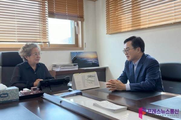 김 지사와 권여사는 면담 후 만찬을 함께 했다. 만찬장에는 정세균 전 국무총리(노무현재단 이사장), 곽상언· 김정호· 김현 의원 등도 함께 자리 했다.