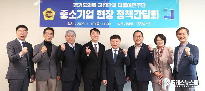 [프레스뉴스] 김대일 기자= 경기도의회 교섭단체 더불어민주당 대표단(대표의원 남종섭, 용인3)은 19일(목) 대내‧외적으로 경제위기가 심화되고 있는 상황에서 도내 유망 중소기업인 ㈜넥스틴을 방문하여 애로사항을 청취하고, 해결방안을 모색하는 시간을 가졌다.