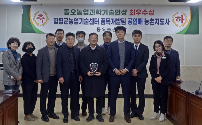 [전남=프레스뉴스] 차윤기 기자= 28일 전남 함평군은 “농업기술센터 품목개발팀 공인배 농촌지도사가 지난 27일 동오농촌재단(이사장 이병만)이 주관한 '제5회 동오농업과학기술인상’에서 최우수상을 수상했다”고 밝혔다.