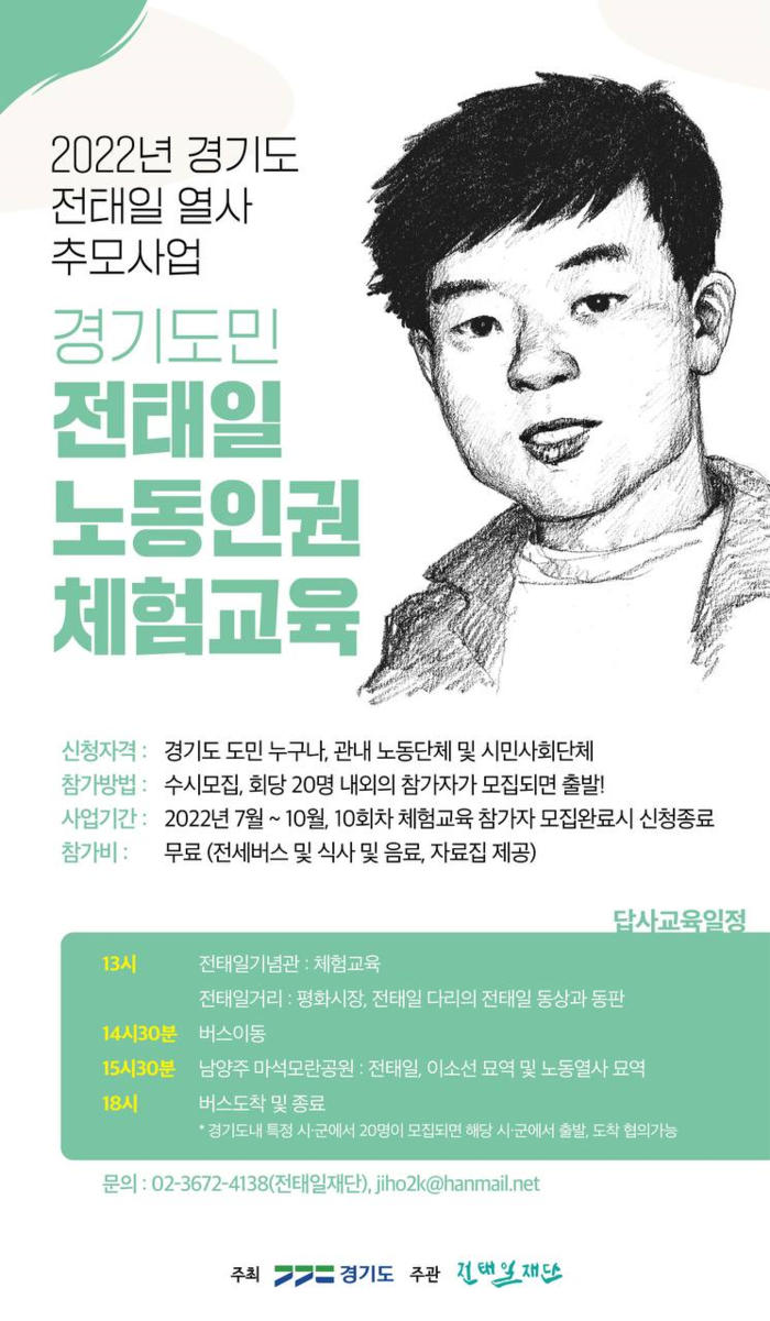 ‘전태일 열사 추모사업’은 노동자의 인간다운 삶을 위해 산화한 전태일 열사의 숭고한 희생정신과 노동 존중 의식을 계승하고자 2020년부터 추진해온 사업으로, 경기도가 주최하고 재단법인 전태일재단이 주관한다.